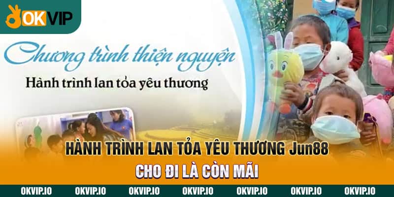 Hành trình lan tỏa yêu thương cùng đối tác OKVIP là chương trình mang ý nghĩa nhân văn với mục đích lan tỏa sự ấm áp cho cộng đồng. Đây là một dự án nhỏ trong toàn bộ chương trình mà Jun88 triển khai. Trong tương lai không xa, nhiều dự án thiện nguyện tiếp nối được tổ chức trên khắp đất nước Việt Nam.