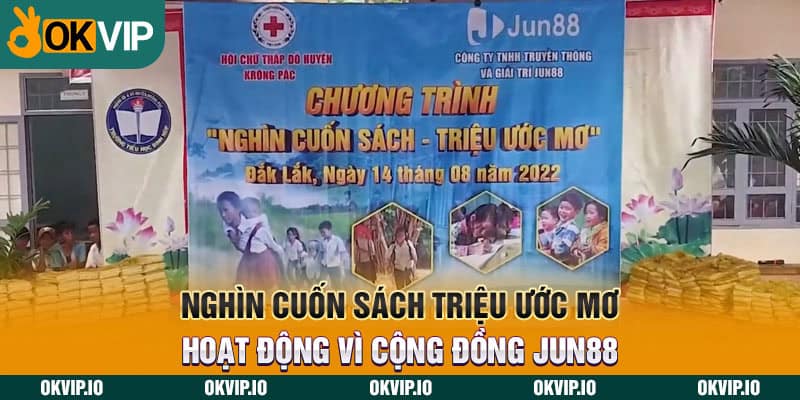 Nghìn cuốn sách triệu ước mơ là hoạt động vô cùng ý nghĩa đã được đội ngũ nhân viên tình nguyện của Jun88 thực hiện cực thành công. Với toàn bộ những cuốn sách được trao, đối tác OKVIP tin tưởng rằng ở một tương lai không xa, tất cả các em học sinh ở đất nước Việt Nam đều có sách giáo khoa mới để học tập.